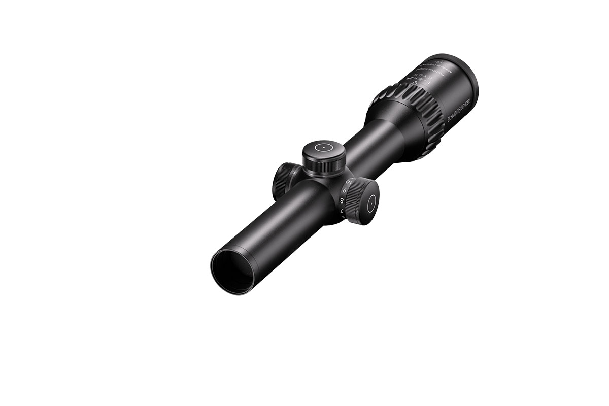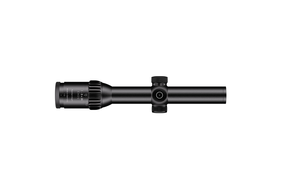 4060537020991 The 1‑8×24 Exos from Schmidt and Bender is a highly versatile, premium hunting riflescope designed for both rapid target acquisition and effective mid‑range shooting. With a magnification range of 1–8× and a 24 mm objective lens, it combines the speed of a red‑dot style sight with the precision of a full zoom optic. Key Features and Benefits True 1× magnification at the low end enables fast, intuitive shots with both eyes open and no magnification distortion. Higher magnification transitions up to 8×, offering flexibility across a wide range of distances. Wide field of view: approximately 35.3 m to 4.9 m at 100 m, providing excellent situational awareness at low magnification and fine detail at higher zoom. Generous eye relief of 90 mm for comfortable and safe mounting across different rifle platforms. High optical quality with an exit pupil of approximately 9.6–3.0 mm and light transmission over 90 %, ensuring bright, crisp imagery even in low light. Compact, durable build: 30 mm main tube, length approx. 293 mm, weight around 595 g. Adjustable illuminated reticle in certain versions for optimal visibility in varied lighting conditions. Technical Highlights Magnification: 1–8× Objective Lens Diameter: 24 mm Field of View: approx. 35.3–4.9 m @100 m Exit Pupil: approx. 9.6–3.0 mm Eye Relief: 90 mm Transmission: >90% Tube Diameter: 30 mm Length: approx. 293 mm Weight: approx. 595 g Ideal Use Case The 1‑8×24 Exos is perfect for hunters and shooters engaging fast-moving game or participating in driven hunts where immediate reaction is needed at short distance, while still providing enough zoom to clearly identify and shoot at greater ranges. Its blend of speed, clarity, and field-ready design makes it a versatile, one-scope solution.