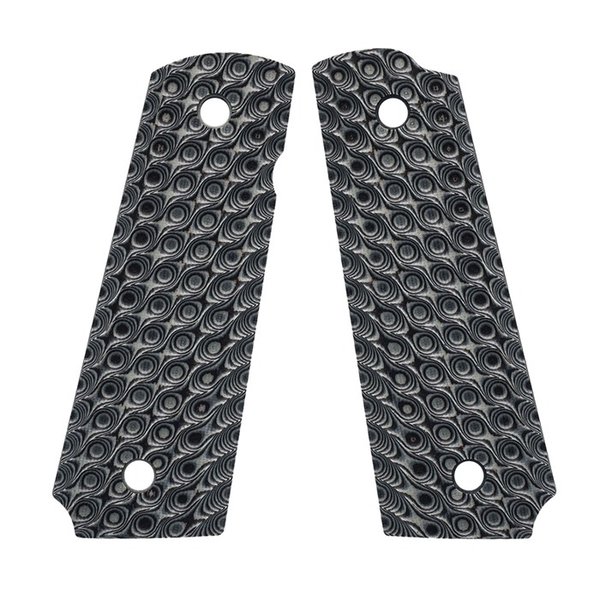 What monsters lurk beneath the waves? VZ Hydra 1911 grips are here to give you a monstrous grip on your gun for when the multi-headed beasts emerge from the darkness. The deep, undulating texture provides aggressive purchase without being overly sharp. The depth and size of the cuts are also great for showing off the patterns that appear in the layers of the G-10 material, especially in the Burl colors. Great for target practice, competition shooting, and even safe queens. Designed to fit all of the most popular full-size (Government or Commander) 1911 models from Colt®, Springfield Armory®, Kimber®, Les Baer®, Dan Wesson Firearms®, and many more. Cut for ambidxtrous safeties Frame: Full Size 1911 Weight: 2.24oz - 63.6g (approximate) Material: G-10 Aggressiveness: 4 out of 5