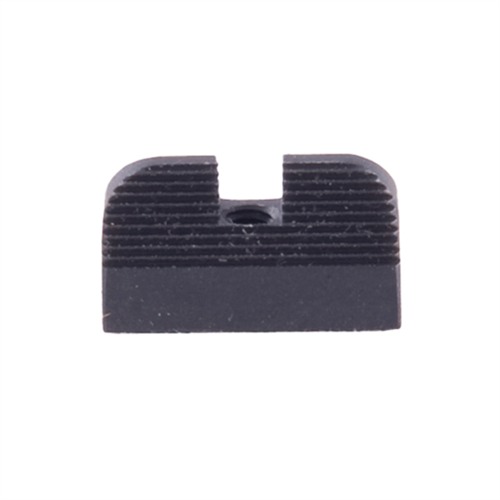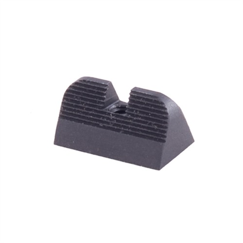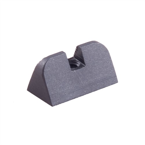 SPECS: Steel, matte black finish. .344" (.87cm) length, .622" (1.8cm) base width, and .317" (.8cm) overall height. .135" (.34cm) wide x .135" high notch. Fits GI-pattern 1911 slide dovetail.