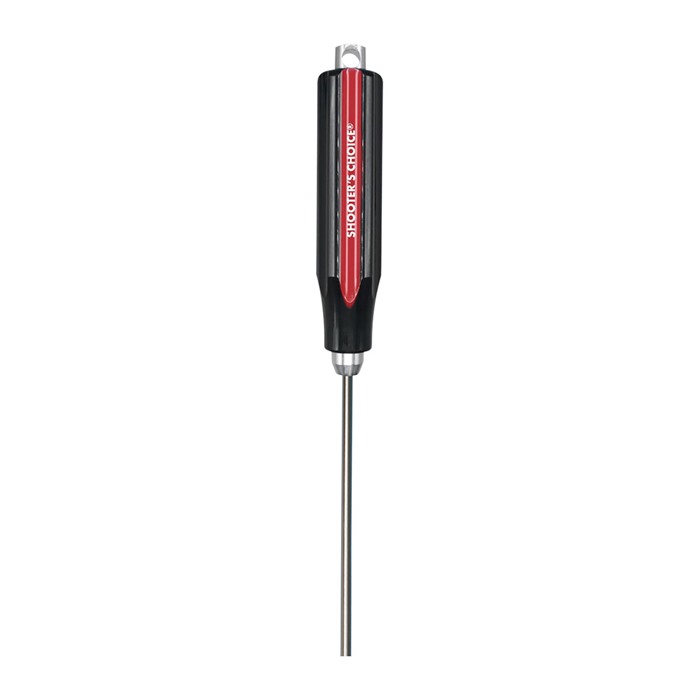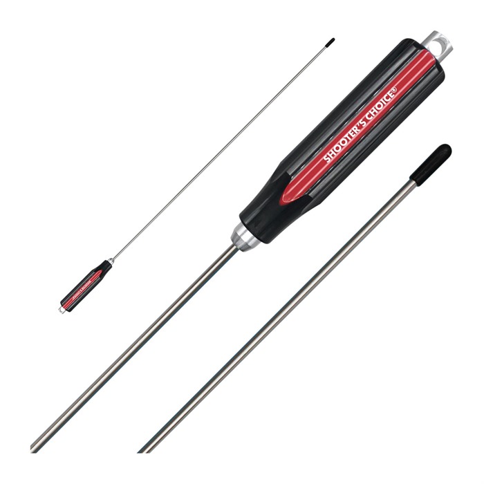 Chaque tige de nettoyage de fusil Shooter's Choice est fabriquée aux États-Unis et dispose d'une poignée de taille complète équipée de roulements à billes en acier qui permettent à la tige et à une brosse ou un jag bien ajusté de tourner avec les rayures du canon, évitant ainsi que l'extrémité filetée de la tige ne se desserre pendant qu'elle descend dans le canon. Chaque extrémité de tige est compatible avec des accessoires filetés standard de 8-32.