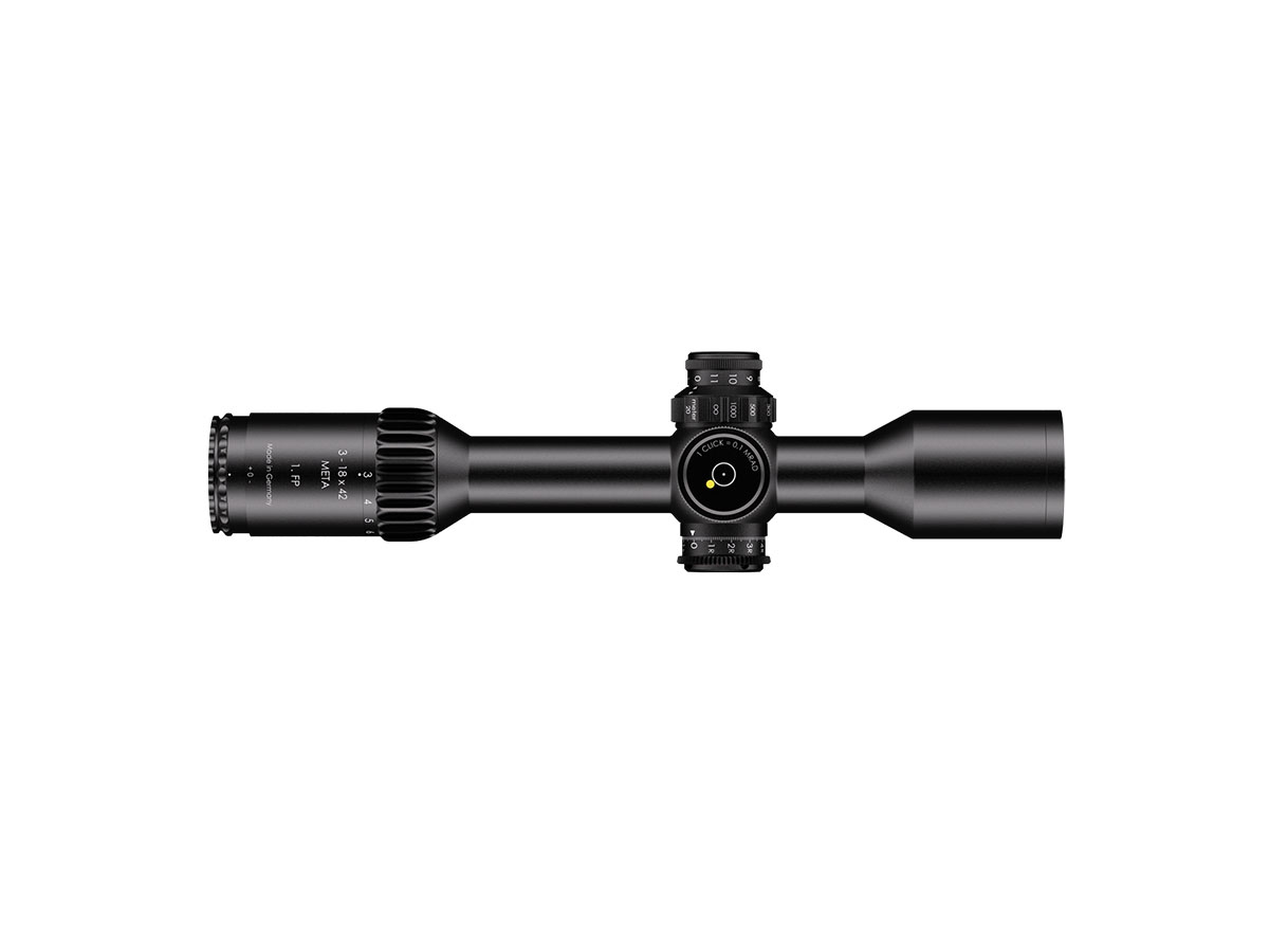 4060537070750 The latest innovation in riflescope technology has arrived: the 3-18x42 Meta (1. BE) combines state-of-the-art engineering, proven functionality, and a striking new design to captivate both hunters and sport shooters alike. With a host of new configurations and unique features, this riflescope sets a new standard for precision, versatility, and performance. New SBX Reticle – Specifically developed for maximum targeting precision, the SBX reticle is perfectly suited for a wide range of shooting applications. First Focal Plane (FFP) Reticle – The reticle’s scale adjusts perfectly across all magnifications, ensuring consistent target acquisition. Its intelligent design allows for effective use even at lower magnification levels. Refined Exterior Design – Compact, bold, and ergonomic. Optimized turrets and a streamlined profile deliver intuitive operation and a modern, distinctive look. Battle-Proven Turrets – Built for endurance, these robust turrets have been tested under extreme conditions, guaranteeing absolute reliability and repeatable accuracy. Optimized for Clip-On Devices – The improved diopter adjustment enables a seamless transition between the eyepiece and the main tube, making it ideal for use with night vision or thermal attachments. Enhanced Zoom Control – The TMR magnification ring allows for effortless operation and full compatibility with the S&B Throw Lever, providing faster and smoother magnification adjustments in any situation. Includes Tenebraex Lens Covers – Premium protection for both the objective and eyepiece lenses, ensuring durability and clarity in all weather conditions. Designed for both hunting and sport shooting, the 3-18x42 Meta (1. BE) builds upon the proven performance of its predecessor while introducing groundbreaking innovations. It’s the ultimate companion for demanding hunters, mid-range precision shooters, and dynamic shooting disciplines — a true benchmark in modern riflescope design.