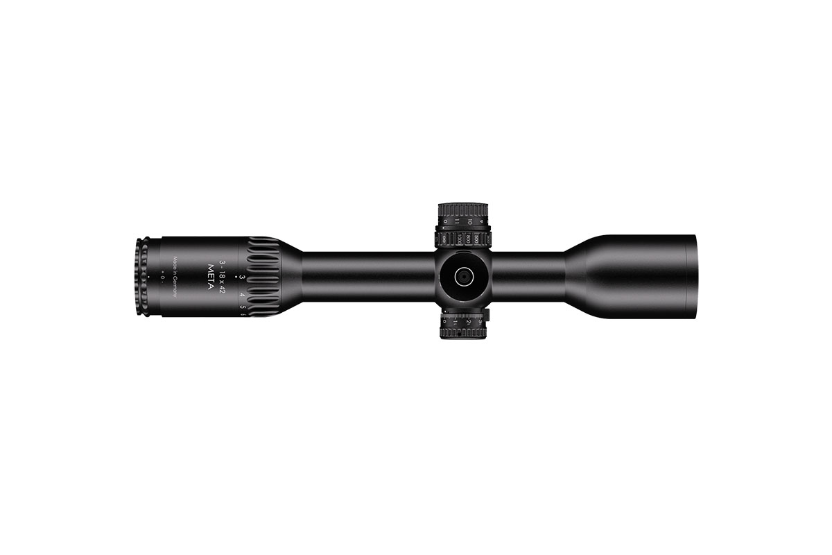 4060537066395 The 3-18x42 Meta combines exceptional optical clarity with powerful performance, delivering a premium shooting experience for both hunters and precision marksmen. Its wide field of view, paired with the LP7 reticle featuring an illuminated red dot, provides superior situational awareness and lightning-fast target acquisition. Unmatched precision is achieved through patented Zero Deviation Technology, a parallax adjustment starting from 20 m, and a generous internal adjustment range, ensuring consistent accuracy even at long distances. For enhanced mounting flexibility, the 3-18x42 Meta features the innovative “LPI” system – an illumination control integrated into the parallax adjustment turret. This smart design improves ergonomics and handling, offering smooth operation for both right- and left-handed shooters. The slim, streamlined construction of the scope makes it perfectly compatible with clip-on devices, while the reinforced ocular ring allows secure attachment of dust covers or add-on optics. With its blend of cutting-edge technology, robust build quality, and refined usability, the 3-18x42 Meta stands as a true symbol of precision engineering — designed to deliver reliability, adaptability, and clarity in every shooting scenario.