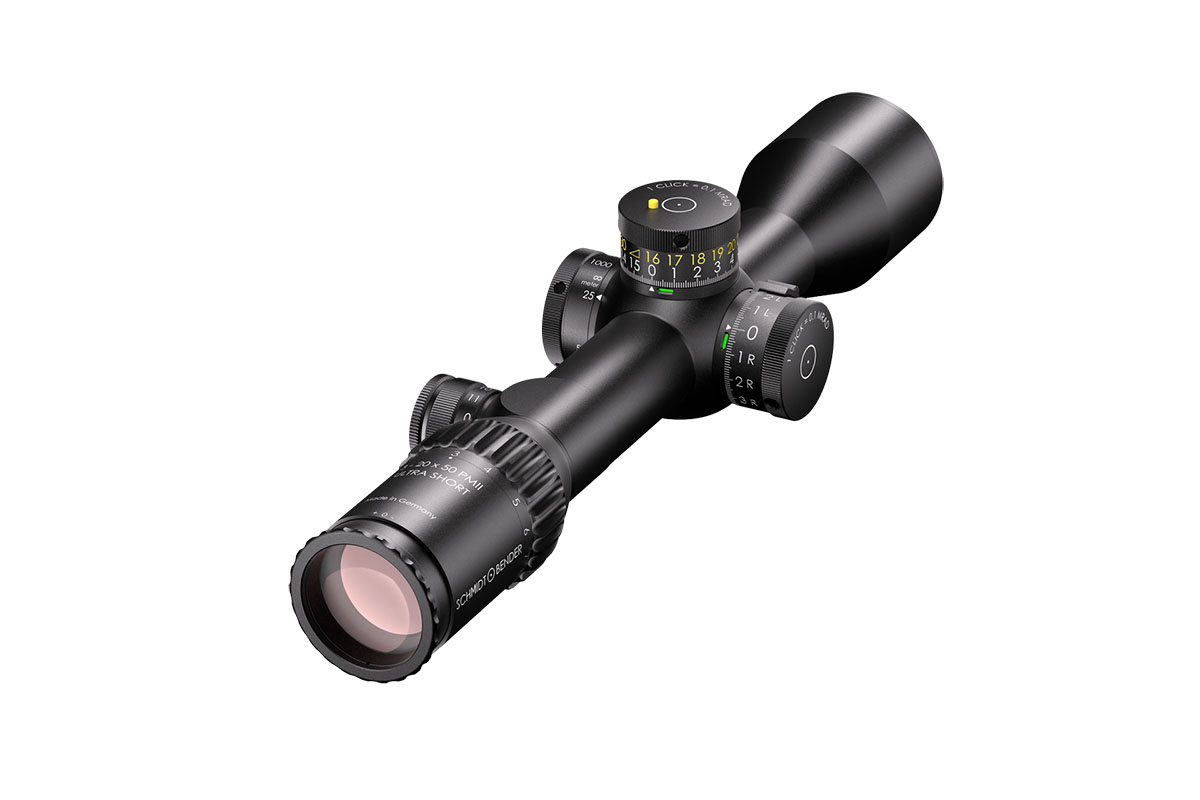 4060537040128 The 3‑20×50 PM II Ultra Short from Schmidt and Bender is a compact yet powerful riflescope engineered for high-performance engagements across medium to long distances. With its 3–20× magnification range and a 50 mm objective lens, it offers outstanding optical clarity and flexibility in a streamlined form factor. Constructed around a robust 34 mm main tube, it maintains a length of approximately 340 mm and weighs around 900 g, striking an excellent balance between size and performance—ideal for mounting on compact platforms without compromising optics. Its field of view spans roughly 13.0–2.1 m at 100 m, providing broad situational awareness at lower magnification and refined detail at the high end. The exit pupil ranges around 11.4–2.5 mm, and the eye relief is approximately 90 mm, supporting comfortable shooting in varied positions while maintaining strong light-gathering even as light fades. Advanced features include first focal plane (FFP) illuminated reticle options, side parallax adjustment (from approx. 25 m to infinity), and a low-profile elevation turret optimized for tactical precision. Key Specifications: Magnification: 3–20× Objective Lens Diameter: 50 mm Main Tube Diameter: 34 mm Field of View: approx. 13.0–2.1 m @100 m Exit Pupil: approx. 11.4–2.5 mm Eye Relief: approx. 90 mm Length: approx. 340 mm Weight: approx. 900 g With precision optics, compact build, and rugged mechanical design, the 3‑20×50 PM II Ultra Short is built for serious shooters who demand premium performance in a versatile package.