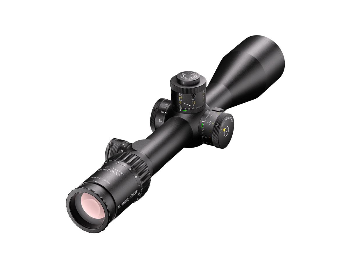 4060537026795 The 3‑27×56 PM II High Power from Schmidt and Bender is a premier tactical riflescope engineered for ultimate versatility—capable of precise performance from near‑range engagements all the way to extreme long‑distance targets. With an expansive 3–27× magnification range, this scope adapts effortlessly across calibres and mission profiles. Its 56 mm objective lens offers exceptional light gathering and clarity, enabling detailed target acquisition even at great distances. The field of view spans approximately 13.0–1.4 m at 100 m, while the exit pupil ranges around 8.7–2.1 mm. Generous eye relief of around 90 mm ensures comfortable alignment and a stable sight picture. Built on a rugged 34 mm main tube, the scope is constructed for demanding environments. The turret system accommodates ultra‑fine click values (e.g., ~0.1 mrad) and massive internal adjustment ranges for elevation and windage—making it suitable for long‑range engagement scenarios. Parallax adjustment commonly spans from around 10 m to infinity, giving flexibility across varied target distances. Key Specifications: Magnification: 3–27× Objective Lens Diameter: 56 mm Main Tube Diameter: 34 mm Field of View: approx. 13.0–1.4 m @100 m Exit Pupil: approx. 8.7–2.1 mm Eye Relief: approx. 90 mm Click Value: approx. 0.1 mrad (~0.5 cm @100 m) depending on configuration Parallax: from ~10 m to infinity Crafted with German precision, the 3‑27×56 PM II High Power is ideal for professionals, competition marksmen or hunters who demand the highest optical clarity, mechanical resilience and full versatility across a wide range of engagement distances.