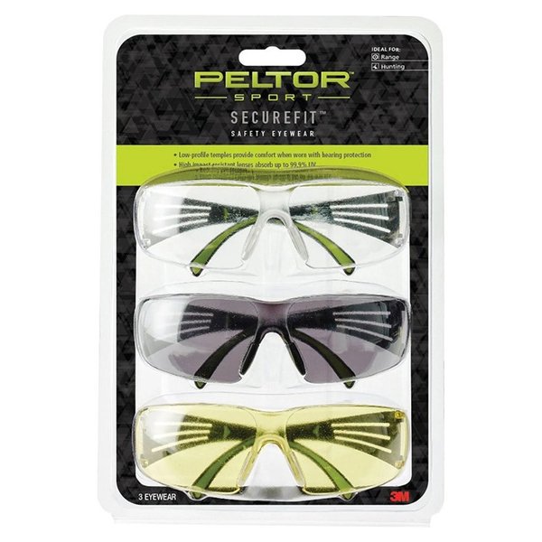 Merci d'avoir choisi le pack de 3 lunettes de sécurité Securefit 400 de 3M, comprenant des verres clairs, ambre et gris. Ce guide vous fournira des instructions de sécurité essentielles pour garantir une utilisation sûre et efficace de votre produit. Veuillez lire attentivement ce guide avant d'utiliser les lunettes.