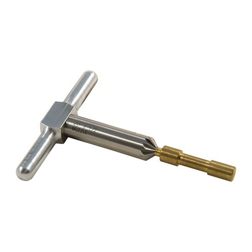 Le cutter à chanfreiner à 45° est conçu pour casser les arêtes des rayures, assurant une sortie de balle propre, ou pour chanfreiner les bouches de chambre des cylindres de revolver pour des recharges rapides. Ce kit comprend le cutter, une poignée et un pilote, le tout dans une boîte en polypropylène. Le pilote interchangeable maintient le cutter correctement aligné. N'hésite pas à acheter des pilotes supplémentaires pour utiliser un seul cutter avec plusieurs calibres différents. Des pilotes pour d'autres calibres sont disponibles séparément.