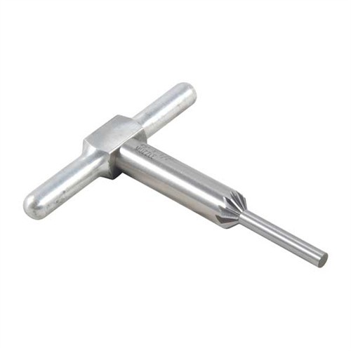Ce cutter à chanfreiner de 45° casse les arêtes des rayures pour un passage de balle propre ou chanfreine les bouches de chambre des cylindres de revolver pour des recharges rapides. Il comprend le cutter, une poignée et un pilote, le tout dans une boîte en polypropylène. Le pilote interchangeable maintient le cutter correctement aligné. Pense à acheter des pilotes supplémentaires pour utiliser un même cutter avec plusieurs calibres différents. Des pilotes pour d'autres calibres sont disponibles séparément.
