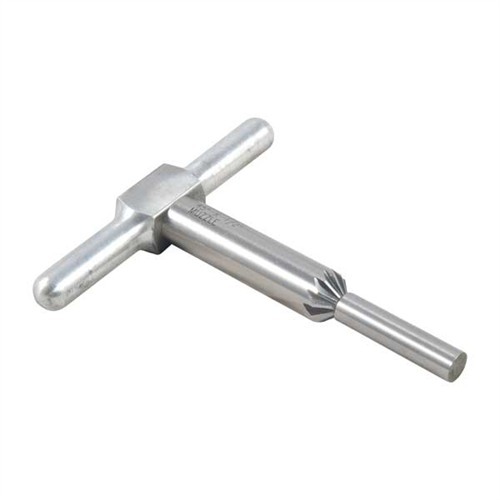 Le cutter de chambrage à 45° casse les arêtes des rayures pour une sortie de balle propre, ou chamfre les bouches de chambre des cylindres de revolver pour des recharges rapides. Le kit comprend le cutter, un manche et un pilote, le tout dans une boîte en polypropylène. Le pilote interchangeable maintient le cutter correctement aligné. N'hésite pas à acheter des pilotes supplémentaires pour utiliser un cutter avec plusieurs calibres différents. Des pilotes pour d'autres calibres sont disponibles séparément.