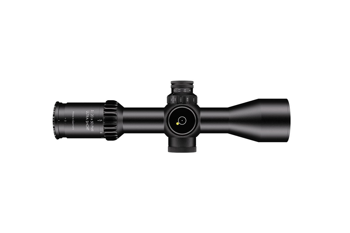 4060537063714 The 3‑20×50 PM II Ultra Short from Schmidt and Bender is a compact yet powerful riflescope engineered for high-performance engagements across medium to long distances. With its 3–20× magnification range and a 50 mm objective lens, it offers outstanding optical clarity and flexibility in a streamlined form factor. Constructed around a robust 34 mm main tube, it maintains a length of approximately 340 mm and weighs around 900 g, striking an excellent balance between size and performance—ideal for mounting on compact platforms without compromising optics. Its field of view spans roughly 13.0–2.1 m at 100 m, providing broad situational awareness at lower magnification and refined detail at the high end. The exit pupil ranges around 11.4–2.5 mm, and the eye relief is approximately 90 mm, supporting comfortable shooting in varied positions while maintaining strong light-gathering even as light fades. Advanced features include first focal plane (FFP) illuminated reticle options, side parallax adjustment (from approx. 25 m to infinity), and a low-profile elevation turret optimized for tactical precision. Key Specifications: Magnification: 3–20× Objective Lens Diameter: 50 mm Main Tube Diameter: 34 mm Field of View: approx. 13.0–2.1 m @100 m Exit Pupil: approx. 11.4–2.5 mm Eye Relief: approx. 90 mm Length: approx. 340 mm Weight: approx. 900 g With precision optics, compact build, and rugged mechanical design, the 3‑20×50 PM II Ultra Short is built for serious shooters who demand premium performance in a versatile package.
