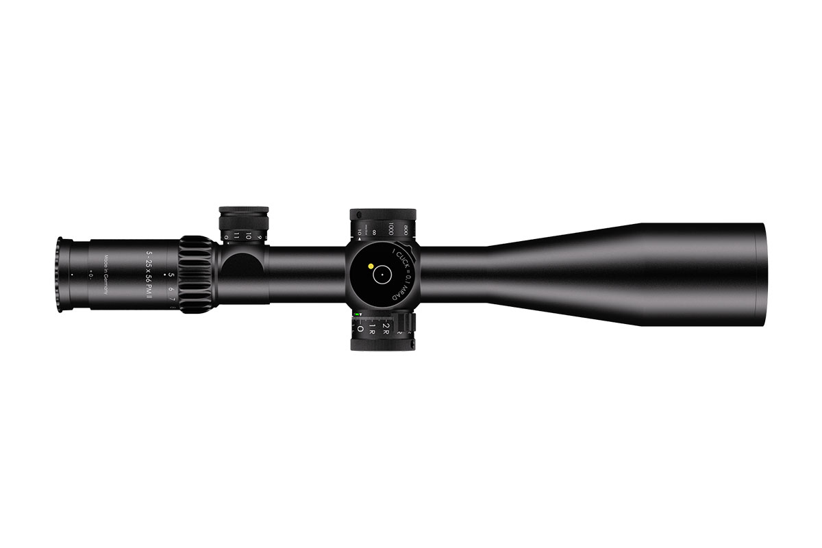 4060537033434 The 5‑25×56 PM II from Schmidt and Bender stands at the pinnacle of variable‑magnification tactical optics, engineered for long‑range precision, outstanding clarity and professional‑level reliability. With a wide 5–25× zoom range and a substantial 56 mm objective lens, it delivers exceptional light‑gathering capability, enabling crisp, bright imagery even at extended distances. Built upon a rugged 34 mm main tube, the scope accommodates large internal adjustment ranges and is designed for demanding use. It features a reticle in the first focal plane (FFP) so that scale and hold‑offs remain accurate at any magnification. The field of view spans approximately 5.3–1.5 m at 100 m, while the exit pupil ranges around 11.0–2.3 mm, and the eye relief remains generous at around 90 mm. The parallax adjustment typically extends from 10 m to infinity, enabling accurate focus from very close ranges through to extreme distances. The turret system is engineered for precision: click values as fine as 0.1 mrad (≈1 cm at 100 m) are available, and a double‑turn elevation turret combined with single‑turn windage allows vast usable correction ranges for wind and elevation. Optical transmission exceeds 90 %, and the construction is nitrogen‑filled, fog‑ and waterproof, ensuring full reliability in all climatic conditions. Key Specifications: Magnification: 5–25× Objective Lens Diameter: 56 mm Main Tube Diameter: 34 mm Field of View: approx. 5.3–1.5 m @100 m Exit Pupil: approx. 11.0–2.3 mm Eye Relief: approx. 90 mm Parallax Adjustment: from ~10 m to infinity Click Value: approx. 0.1 mrad (≈1 cm at 100 m) Optical Transmission: > 90 % Crafted in Germany to the highest standards, the 5‑25×56 PM II is the go‑to choice for military, law‑enforcement and competition shooters who demand absolute clarity, mechanical integrity and extreme flexibility in one optic.