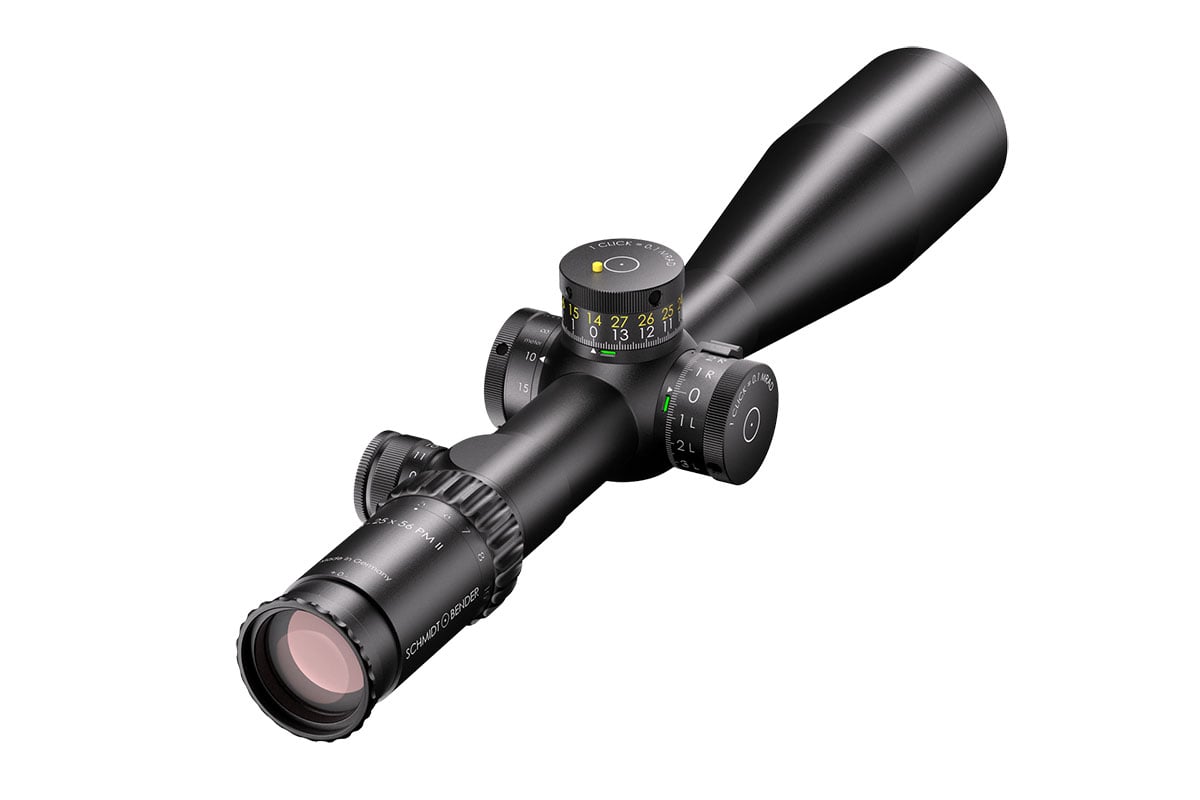 4060537065602 The 5‑25×56 PM II from Schmidt and Bender stands at the pinnacle of variable‑magnification tactical optics, engineered for long‑range precision, outstanding clarity and professional‑level reliability. With a wide 5–25× zoom range and a substantial 56 mm objective lens, it delivers exceptional light‑gathering capability, enabling crisp, bright imagery even at extended distances. Built upon a rugged 34 mm main tube, the scope accommodates large internal adjustment ranges and is designed for demanding use. It features a reticle in the first focal plane (FFP) so that scale and hold‑offs remain accurate at any magnification. The field of view spans approximately 5.3–1.5 m at 100 m, while the exit pupil ranges around 11.0–2.3 mm, and the eye relief remains generous at around 90 mm. The parallax adjustment typically extends from 10 m to infinity, enabling accurate focus from very close ranges through to extreme distances. The turret system is engineered for precision: click values as fine as 0.1 mrad (≈1 cm at 100 m) are available, and a double‑turn elevation turret combined with single‑turn windage allows vast usable correction ranges for wind and elevation. Optical transmission exceeds 90 %, and the construction is nitrogen‑filled, fog‑ and waterproof, ensuring full reliability in all climatic conditions. Key Specifications: Magnification: 5–25× Objective Lens Diameter: 56 mm Main Tube Diameter: 34 mm Field of View: approx. 5.3–1.5 m @100 m Exit Pupil: approx. 11.0–2.3 mm Eye Relief: approx. 90 mm Parallax Adjustment: from ~10 m to infinity Click Value: approx. 0.1 mrad (≈1 cm at 100 m) Optical Transmission: > 90 % Crafted in Germany to the highest standards, the 5‑25×56 PM II is the go‑to choice for military, law‑enforcement and competition shooters who demand absolute clarity, mechanical integrity and extreme flexibility in one optic.
