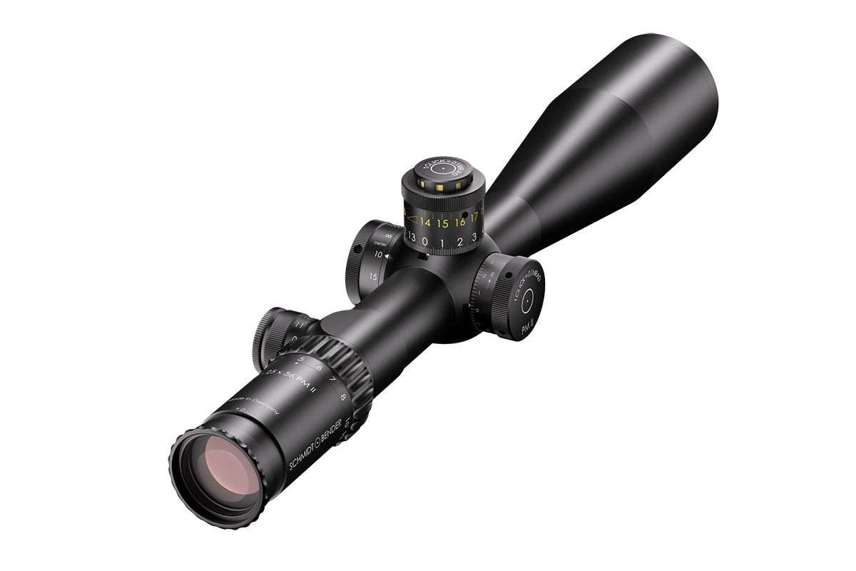 4060537065282 The 5‑25×56 PM II from Schmidt and Bender stands at the pinnacle of variable‑magnification tactical optics, engineered for long‑range precision, outstanding clarity and professional‑level reliability. With a wide 5–25× zoom range and a substantial 56 mm objective lens, it delivers exceptional light‑gathering capability, enabling crisp, bright imagery even at extended distances. Built upon a rugged 34 mm main tube, the scope accommodates large internal adjustment ranges and is designed for demanding use. It features a reticle in the first focal plane (FFP) so that scale and hold‑offs remain accurate at any magnification. The field of view spans approximately 5.3–1.5 m at 100 m, while the exit pupil ranges around 11.0–2.3 mm, and the eye relief remains generous at around 90 mm. The parallax adjustment typically extends from 10 m to infinity, enabling accurate focus from very close ranges through to extreme distances. The turret system is engineered for precision: click values as fine as 0.1 mrad (≈1 cm at 100 m) are available, and a double‑turn elevation turret combined with single‑turn windage allows vast usable correction ranges for wind and elevation. Optical transmission exceeds 90 %, and the construction is nitrogen‑filled, fog‑ and waterproof, ensuring full reliability in all climatic conditions. Key Specifications: Magnification: 5–25× Objective Lens Diameter: 56 mm Main Tube Diameter: 34 mm Field of View: approx. 5.3–1.5 m @100 m Exit Pupil: approx. 11.0–2.3 mm Eye Relief: approx. 90 mm Parallax Adjustment: from ~10 m to infinity Click Value: approx. 0.1 mrad (≈1 cm at 100 m) Optical Transmission: > 90 % Crafted in Germany to the highest standards, the 5‑25×56 PM II is the go‑to choice for military, law‑enforcement and competition shooters who demand absolute clarity, mechanical integrity and extreme flexibility in one optic.