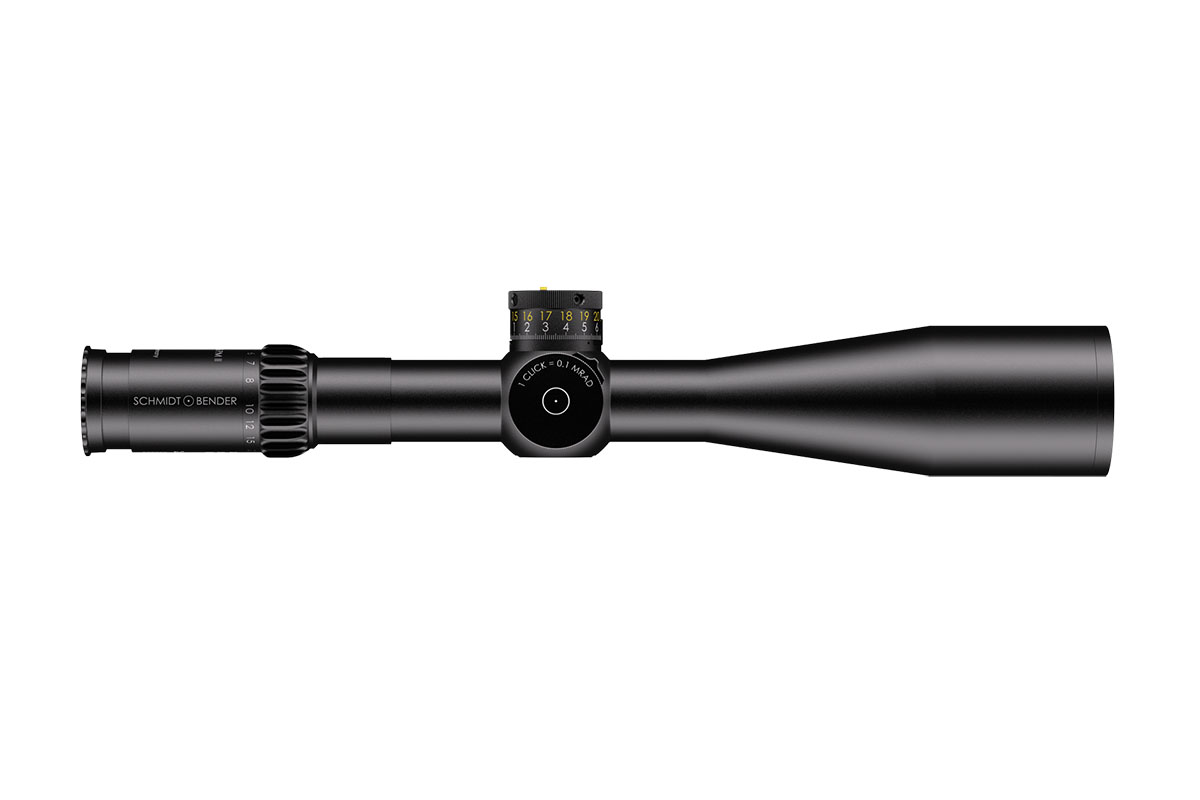 4060537065800 The 5‑25×56 PM II from Schmidt and Bender stands at the pinnacle of variable‑magnification tactical optics, engineered for long‑range precision, outstanding clarity and professional‑level reliability. With a wide 5–25× zoom range and a substantial 56 mm objective lens, it delivers exceptional light‑gathering capability, enabling crisp, bright imagery even at extended distances. Built upon a rugged 34 mm main tube, the scope accommodates large internal adjustment ranges and is designed for demanding use. It features a reticle in the first focal plane (FFP) so that scale and hold‑offs remain accurate at any magnification. The field of view spans approximately 5.3–1.5 m at 100 m, while the exit pupil ranges around 11.0–2.3 mm, and the eye relief remains generous at around 90 mm. The parallax adjustment typically extends from 10 m to infinity, enabling accurate focus from very close ranges through to extreme distances. The turret system is engineered for precision: click values as fine as 0.1 mrad (≈1 cm at 100 m) are available, and a double‑turn elevation turret combined with single‑turn windage allows vast usable correction ranges for wind and elevation. Optical transmission exceeds 90 %, and the construction is nitrogen‑filled, fog‑ and waterproof, ensuring full reliability in all climatic conditions. Key Specifications: Magnification: 5–25× Objective Lens Diameter: 56 mm Main Tube Diameter: 34 mm Field of View: approx. 5.3–1.5 m @100 m Exit Pupil: approx. 11.0–2.3 mm Eye Relief: approx. 90 mm Parallax Adjustment: from ~10 m to infinity Click Value: approx. 0.1 mrad (≈1 cm at 100 m) Optical Transmission: > 90 % Crafted in Germany to the highest standards, the 5‑25×56 PM II is the go‑to choice for military, law‑enforcement and competition shooters who demand absolute clarity, mechanical integrity and extreme flexibility in one optic.