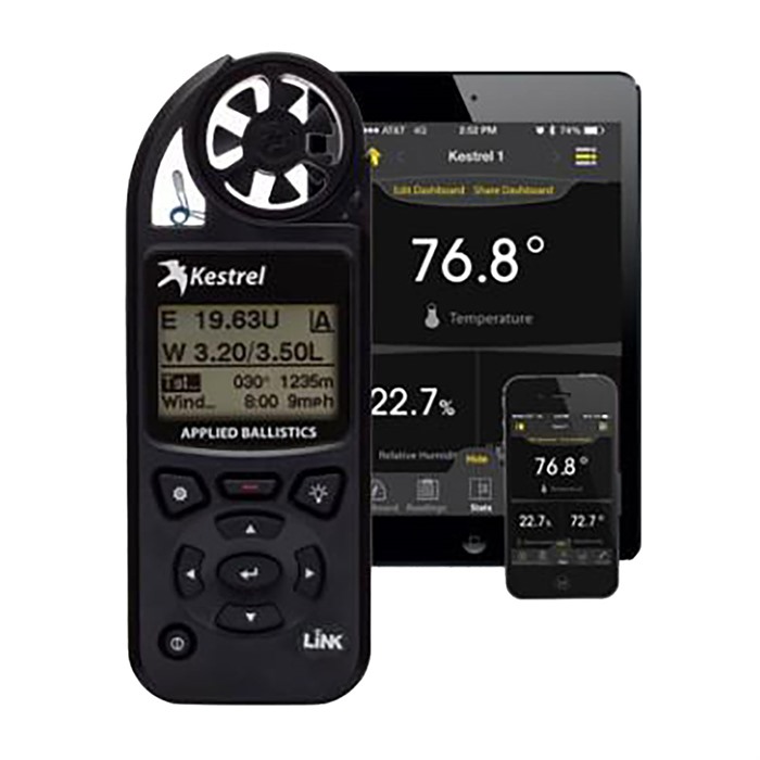 Kestrel’s 5700 Elite Weather Meter with Applied Ballistics software is an upgrade of Kestrel’s path-breaking but now-discontinued 4500 meter optimized specifically for the needs of long-range target shooters. The 5700 Elite measures up to 15 environmental parameters and lets you select either G1 or G7 ballistic coefficients (BC) when calculating bullet trajectory. It fits in the palm of your hand, yet offers the “Litz” (as in, noted ballistician Bryan Litz) measured BC library of over 225 bullets - the most extensive source of measured data for modern small arms bullets. Using its ballistics calibration feature, you can "train" your Kestrel 5700 Elite weather meter’s Applied Ballistics software to match a specific rifle based on observed long-range impacts. The result is an even more accurate set data points you can rely on in future calculations. With such easy access to highly accurate BC data, you’ve got everything you need to make a pin-point precise trajectory calculation - in a hand-held wind meter. More of the Kestrel 5700 Elite’s many features: Bluetooth LiNK to your Android or iOS smartphone Easy-to-use, intuitive user-interface screen navigation Improved screen resolution over earlier models - easier to see in varying light Screen switchable between white & red (NV - night vision) backlight Runs on one (1) AA battery Sealed battery compartment, so a battery leak will not fry your Kestrel’s motherboard Multiple languages: English, French, German & Spanish Reinforced molded hard polymer shell & scratch/breakage-resistant viewing window Wait - it gets better! The Kestrel 5700 Elite Weather Meter comes with integrated Bluetooth technology, so both your real-time environmental and logged data can be transferred wirelessly and automatically to your smartphone, Mac, or PC. Yes, it’s Android AND iPhone compatible, so whatever phone OS has your allegiance, the 5700 is ready to play nice with it. It will also connect via LiNK to a Bushnell CONX Rangefinder, enabling you to view results from the AB Kestrel right on your rangefinder. If you want to squeeze every last drop of performance from your rifle and your ammo, make sure you have a Kestel 5700 Elite with Applied Ballistics software with you the next time you hit the range.