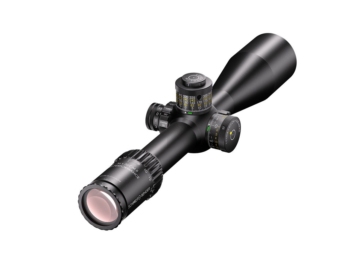 4060537070569 The 6‑36×56 CM II High Performance from Schmidt and Bender is a high-end precision riflescope engineered for medium to extreme long-range engagement. With a magnification range of 6–36× and a large 56 mm objective lens, it delivers outstanding clarity, resolution, and flexibility across demanding shooting scenarios. Its optical design provides an exceptionally large field of view for a scope in this class — even at the lowest magnification (6×), it outperforms many 5–25× scopes in terms of visual coverage. Advanced coatings ensure light transmission well over 90 %, enabling superb image brightness and contrast in challenging lighting conditions. Built on a 34 mm main tube, the scope is compact yet robust, with a length of approximately 390 mm and weight around 940 to 995 g, depending on configuration. Eye relief is generous at 90 mm, ensuring comfortable and safe use across rifle platforms. The turret system offers very large internal adjustment ranges (over 40 mrad, approx. 395 cm elevation at 100 m) and fine click values (e.g., 0.5 cm/100 m), making it well suited for precision ballistic correction at long distances. Side parallax adjustment and the integrated LPI system (illumination integrated into the parallax knob) enhance ease of use and compatibility for left-hand shooters. Key Specifications: Magnification: 6–36× Objective Lens Diameter: 56 mm Main Tube Diameter: 34 mm Field of View (approx.): 7.3–1.3 m @100 m Exit Pupil: approx. 8.3–1.6 mm Eye Relief: 90 mm Click Value: approx. 0.5 cm @100 m (configuration-dependent) Internal Elevation Adjustment: approx. 395 cm @100 m Weight: approx. 940–995 g Transmission: >90 % Tube Diameter: 34 mm Length: approx. 390 mm Reticle and Turret Configurations: Various high-end match/tactical setups available This scope is designed for marksmen, competition shooters, and professionals who demand the highest optical clarity, mechanical robustness, and long-range capability from one flagship optic.