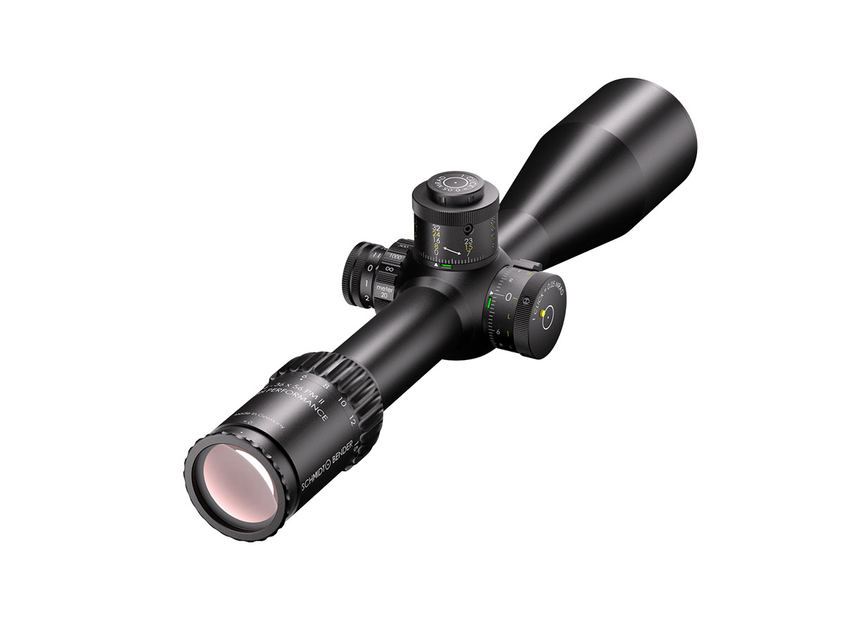 4060537065947 The 6‑36×56 PM II High Performance from Schmidt and Bender is a benchmark optic engineered for serious medium‑ to extreme‑long‑range shooting. With its expansive 6–36× magnification range and a generous 56 mm objective lens, it delivers exceptional clarity, reach and flexibility for demanding applications. Crafted on a robust 34 mm main tube, the scope is compact in length (approx. 390 mm) and relatively light for its class (around 940 g), yet built with the ruggedness and precision befitting the PM II series. The first‑focal‑plane (FFP) reticle ensures accurate hold‑overs, ranging and subtensions at every magnification level. With a transmission rating of well over 90 %, the optical system offers bright, high‑resolution imagery critical for target recognition at extended distances. Its field of view spans about 7.3–1.3 m @100 m, and the exit pupil ranges from approximately 8.3–1.6 mm, providing both wide situational awareness at lower magnification and finely‑detailed views at higher zoom levels. The eye relief is approximately 90 mm, ensuring comfortable viewing across shooting positions. The turret system features ultra‑fine 0.1 mrad click values, and the internal adjustment ranges exceed 40 mrad, giving the shooter a massive envelope for elevation and windage correction. The scope’s innovative “LPI” (Illuminated‑Parallax‑Integrated) system enhances usability, including left‑hand shooter compatibility and more mounting flexibility. Key Specifications: Magnification: 6–36× Objective Lens Diameter: 56 mm Main Tube Diameter: 34 mm Field of View: approx. 7.3–1.3 m @100 m Exit Pupil: approx. 8.3–1.6 mm Eye Relief: approx. 90 mm Transmission: >90% Click Value: ~0.1 mrad Length: approx. 390 mm Weight: approx. 940 g Designed and manufactured in Germany with highest precision, the 6‑36×56 PM II High Performance is ideal for professionals, competition marksmen or hunters seeking top‑tier optical clarity, mechanical integrity and flexibility across distances that demand elite performance.