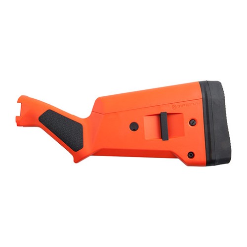 The SGA Stock is an ambidextrous, user-configurable buttstock designed to add much-needed adjustability to the tried-and-true Remington 870 12-gauge shotgun. Featuring a spacer system for length of pull adjustment, improved grip ergonomics, recoil-reducing butt-pad, optional cheek risers for use with optics / raised sights, and other accessories, The SGA 870 brings Magpul design and engineering to another classic American firearm. Available in Black, Flat Dark Earth, Stealth Gray and Orange to adapt to the mission at hand. Made in the USA. FEATURES Spacer-adjustable lop in 1/2" increments from 12.5" to 14.5" Recoil-reducing butt-pad Integral right & left 1.25" sling loops Enhanced grip angle ergonomics SPECS Platform: Shotgun Compatibility: Remington 870 12-gauge shotgun Butt-Pad Dimensions: 1.5 x 5.0 in. LOP Adjustment Range: ~12.3-14.3 in. Weight: 1.5 lbs. (with two Spacers installed) Width of Butt, max: 1.5 in.
