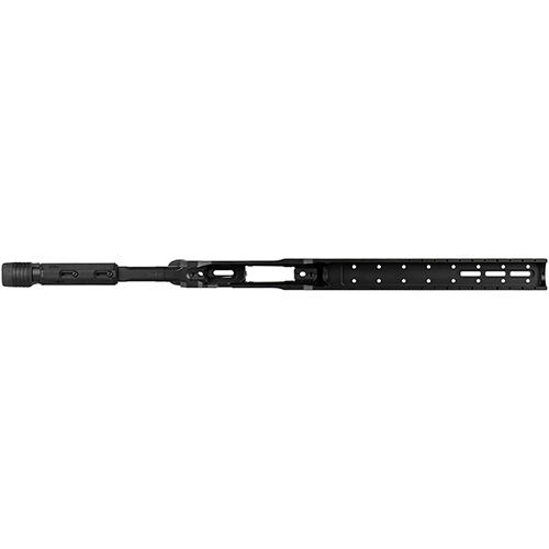 - Forend compact : Avec un forend de 15 pouces, il peut accueillir des canons à partir de 17 pouces.