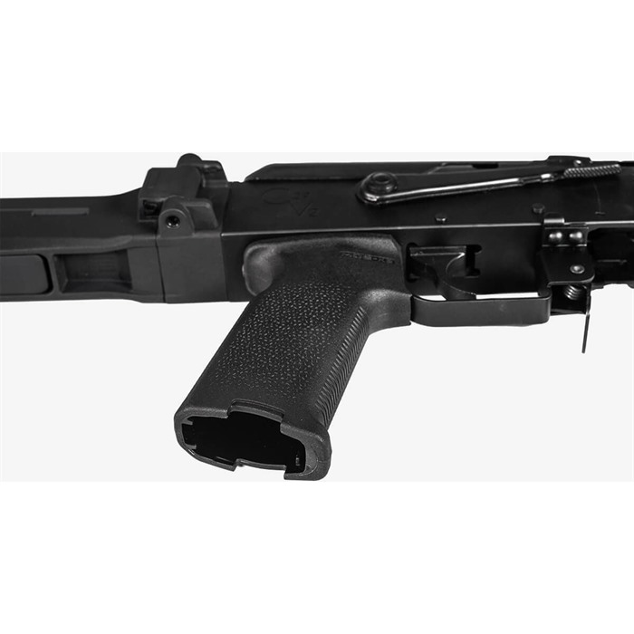 The MOE-K2 AK Grip is a drop-in upgrade for AK47/AK74 pistol grips that offers a more vertical grip angle, but in a full-size grip design. The steeper vertical grip angle improves comfort and control on these shorter LOP rifles that bring the primary hand in closer to the shooter’s body. With an aggressive TSP texture for positive weapon control, compatibility with optional Storage Cores for gear stowage, and a unique backstrap design for proper trigger finger placement, the K2 brings modern styling and ergonomics to the AK platform. Made in U.S.A. FEATURES Drop-in upgrade for AK47/AK74 pistol grips Fits both milled and stamped receivers, including those with grip reinforcement plates More vertical grip angle than typical Kalashnikov designs Unique backstrap shape for proper trigger finger placement Aggressive TSP texture (Trapezoidal Surface Projections) for positive weapon control in all environments Includes a basic grip cap, but accepts optional Storage Cores for customized gear stowage