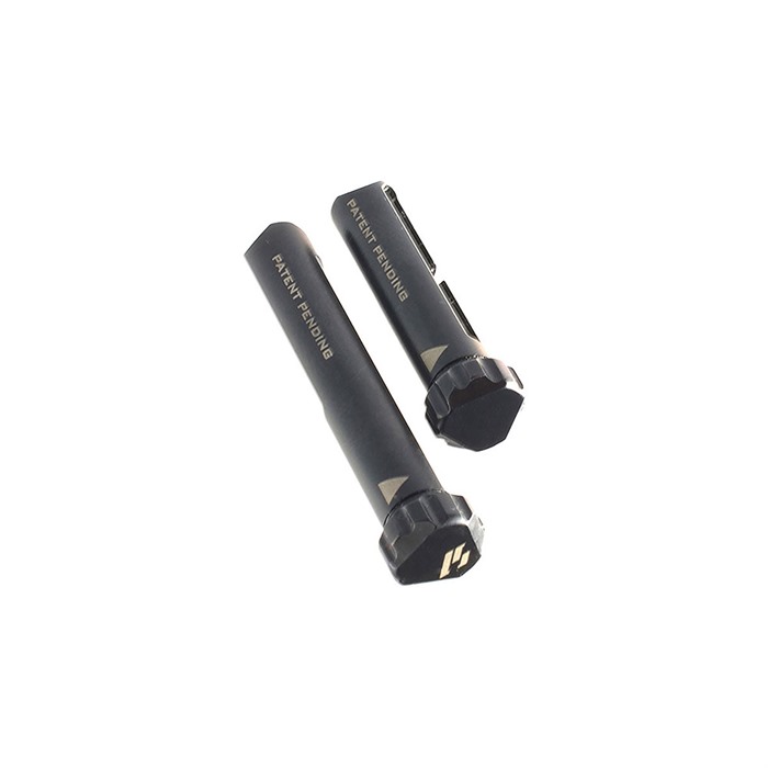 Les goupilles Shift de Strike Industries apportent une solution innovante au marché de l'AR-10/LR-308. Avec une surface de prise prolongée pour un démontage facile sans besoin d'un outil, ces goupilles sont également conçues avec des mécanismes de déconnexion rapide, ce qui permet de ne pas avoir à retirer des pièces supplémentaires comme une plaque arrière, un écrou de château ou un tube de buffer. Il te suffit de faire pivoter et de retirer les goupilles comme indiqué ci-dessous.