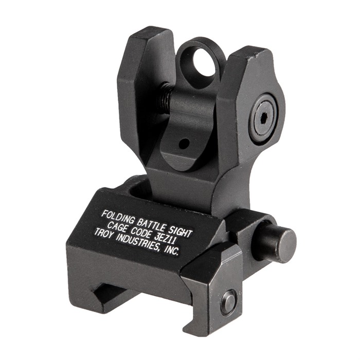 Rugged, flip-up sights provide failsafe backup when your primary optic or red dot sight fails. Deploys easily and locks securely in place under powerful spring pressure and two locking detent balls, so it can’t be accidentally bumped down until you hit the spring-loaded button on the left side of the base to retract it. Positions apertures at the same height as factory sights, simplifying integration of these sights on your rifle. Base clamps securely to any military or commercial Picatinny rail using a standard flathead screwdriver - no knobs or levers to catch on brush, clothing, or other gear. Protective “ears” shield posts and apertures from impact. Rear sights bolt to flattop receiver rail and are only .460" high when folded. Detent-locking adjustment wheel lets you change the windage setting in ½ MOA increments.