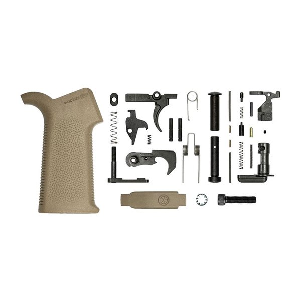 815421027501 La gamme de kits de pièces inférieures d'Aero Precision avec des poignées Magpul™ est conçue pour s'adapter à vos besoins. Chaque kit est disponible avec des options de poignée MOE SL® en noir et FDE. Achetez avec leur groupe de contrôle de tir militaire éprouvé ! Ce kit de pièces inférieures AR15 comprend les composants nécessaires pour assembler un récepteur inférieur Aero Precision AR15 Gen 2 ou un récepteur inférieur militaire similaire. Il comprend une poignée Magpul MOE SL® et un garde-trigger Magpul MOE. Voir ci-dessous pour une liste complète des composants inclus. Poignée Magpul MOE SL® en noir ou FDE, Garde-trigger Magpul MOE en noir ou FDE, Broche de démontage, Broche de pivot, Détente de démontage/pivot, Ressort de démontage/pivot, Arrêtoir de boulon, Ressort d'arrêtoir de boulon, Broche de roulage d'arrêtoir de boulon, Corps de maintien de chargeur, Bouton de chargeur, Ressort de chargeur, Retenue de tampon, Ressort de retenue de tampon, Sélecteur de sécurité, Ressort de sélecteur de sécurité, Détente de sélecteur de sécurité, Vis de réglage 4-40 (pour le trou de détente de broche de démontage filetée), Déclencheur, Marteau, Ressort de déclencheur, Broches de déclencheur/marteau, Ressort de marteau, Déconnecteur, Ressort de déconnecteur.En rupture de stock, environ 4-12 semaines à partir de l'entrepôt principal.