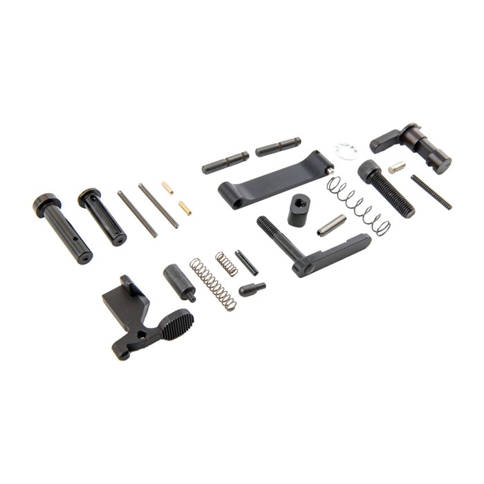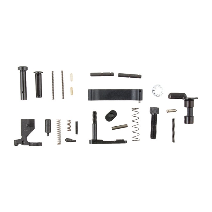 050806111714 Ce kit de pièces pour récepteur inférieur AR-15 5.56 NATO est fabriqué avec des pièces de haute qualité, Made in the USA, conformes aux normes Mil-Spec. Ce kit ne contient pas de groupe de contrôle de tir ni de poignée de pistolet. Chaque pièce est bien fabriquée, durable et emballée dans des sacs codés par couleur pour une installation facile. Ce kit est un excellent choix pour construire ou reconstruire un fusil AR-15. Contient : Goupille de démontage, Goupille de pivot du récepteur, Détente de goupille de démontage (2), Ressort de détente de goupille de démontage (2), Attrape-boulon, Piston d'attrape-boulon, Goupille de ressort d'attrape-boulon, Ressort d'attrape-boulon, Retenue de tampon, Ressort de retenue de tampon, Attrape-chargeur, Ressort d'attrape-chargeur, Bouton d'attrape-chargeur, Assemblage de garde de détente, Goupille de ressort de pivot de garde de détente, Sélecteur de sécurité, Détente de sélecteur, Ressort de détente de sélecteur, Rondelle de vis de poignée, Vis de poignée.Supprimé du programme