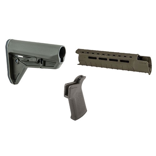 Upgrade your AR-15 rifle with this MOE-SL furniture set by Magpul. The MOE SL Stock – Mil-Spec Model is a drop-in replacement buttstock for AR-15/M4 carbines using mil-spec sized receiver extension tubes. Designed for the modern battlefield, the sleek profile, dual-side release latches, rolled toe, and angled rubber butt-pad is optimized for use with body armor or modular gear and provides for efficient shoulder transitions. The MOE SL Hand Guard for AR-15/M4 firearms with mid-length gas system and A2 font sight provides modular flexibility with M-LOK accessory slots in a lightweight, sleek, cost effective design. Similar to the MOE-K2, the MOE SL Grip (Magpul Original Equipment Slim Line) is a drop-in upgrade for AR-15/M4 pistol grips with a more vertical grip angle optimized for short LOP weapons that bring the primary hand in closer to the shooter’s body. With an aggressive new texture for positive weapon control along with excellent ergonomics, the SL Grip provides a slightly smaller size and slimline feel. All mounting hardware included.