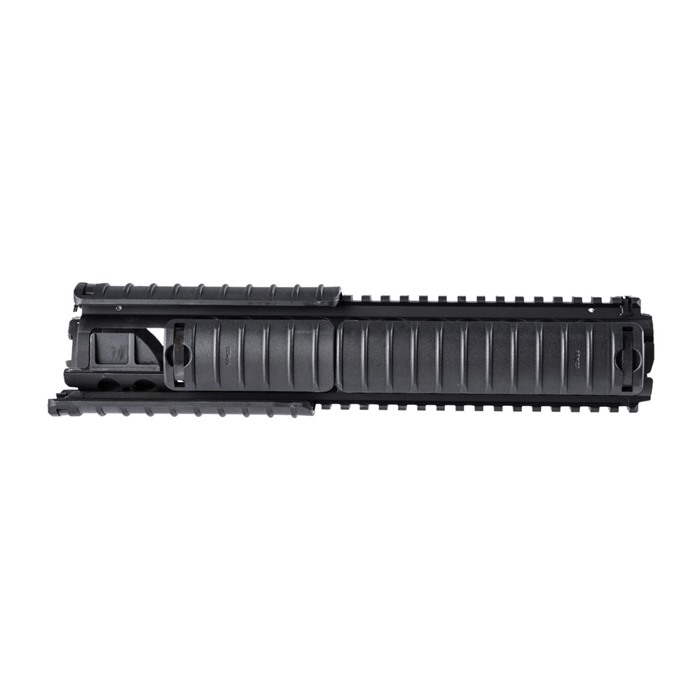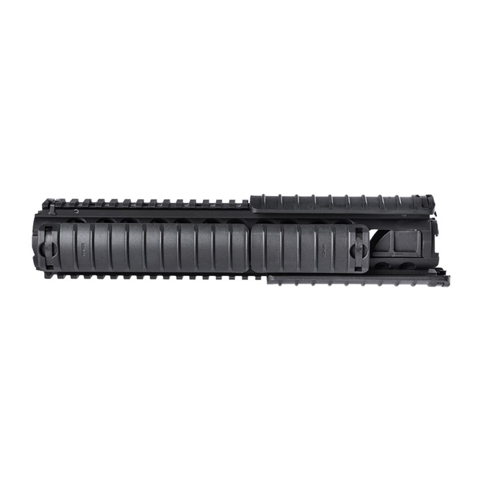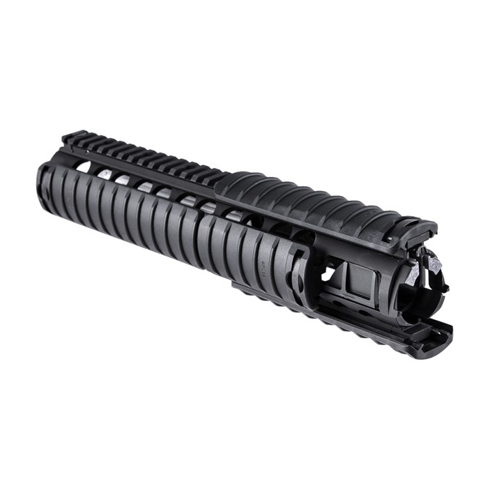 M16 and M4 Rail Adapter Systems The same type of rail systems provided to the US Government, the M4 and M5 Rail Assembly Systems fit standard carbine and rifle gas length rifles, that are equipped with standard delta rings and handguard caps (circle for the M4 and triangle for the M16). Rails include polymer rail covers to protect the aluminum handguards from damage, as well as your hands from the Picatinny rail. Drop-in installation does not require the removal of the delta ring or front sight. Rock-in similar to a standard polymer handguard. Retaining mechanism tightens up the Rail Assembly System once installed, so that you can attach laser aiming devices and be confident in zero retention. These handguards are provided to Brownells by a US Government contractor and are new production.