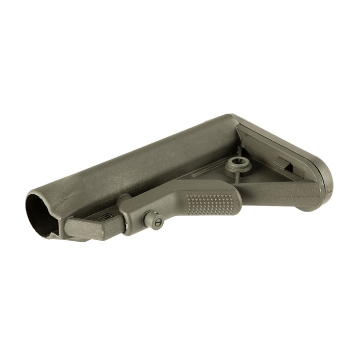 Elle propose un cheekweld amélioré conçu pour un confort et une cohérence accrus. Ses contours épurés évitent de s'accrocher aux vêtements, à l'équipement ou à la végétation, facilitant ainsi une opération sûre et discrète. Le loquet de crosse Sure-Grip permet un ajustement de la longueur de tir pratique et intuitif, tandis que le pad de recul en caoutchouc antidérapant maintient l'arme contre l'épaule de l'opérateur.