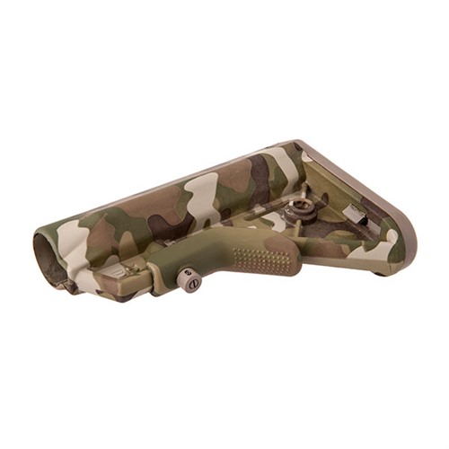 Fabriqué à partir de matériaux et de finitions MIL-SPEC, ce stock en polymère renforcé est actuellement utilisé par l'armée américaine. Il s'adapte aux extensions de récepteur de type M4 et offre un cheek weld amélioré pour un confort et une cohérence accrus.