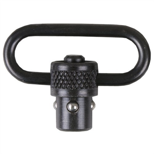 Les attaches en acier usinées avec des boucles de 1¼" disposent d'un bouton-poussoir central qui fonctionne en douceur et de surfaces à roulement à billes polies pour une fixation facile sur les armes à feu équipées de bases à détachement rapide. Elles offrent une rotation silencieuse à 360° pour éliminer les enchevêtrements de sangle et améliorer le confort lors d'une utilisation prolongée.