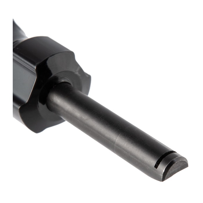 Essayer de redresser les lèvres avec des pinces peut créer des entailles rugueuses et inesthétiques, ou pire encore, des fissures dans le métal qui ne peuvent pas être réparées. Le shank en acier usiné avec coupe biseautée et fente te permet d'accrocher les lèvres et de les maintenir en soutien, tout en ajustant leur angle de contact sur la douille de cartouche.