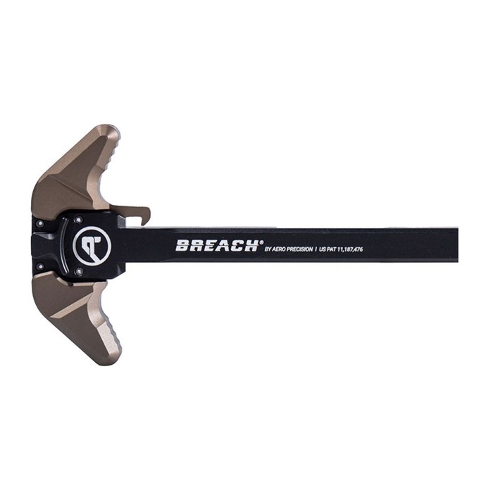 A large-frame AR .308 rifle needs a larger charging handle than those small, flimsy mil-spec designs. This Aero Precision Breach Ambidextrous Charging Handle is sized right for your big-bore AR, and it's built right so that you can count on it in harsh environments and brutal scenarios. Each Aero Precision Breach Charging Handle can be had in two different sizes, so you can choose the one that best meets your needs. The smaller of the two levers provides a sleek design that blends in with the overall lines of your rifle without creating any snag points, but it still provides a comfortable, ergonomic surface for easy racking. The larger of the two levers gives you more surface area for instant, easy activation of the lever, whether through rapid one-handed racking or other motions. The Aero Precision Breach Charging Handle is machined from 7075 aluminum and is treated with a hardcoat-anodized finish. Like all of Aero's products, this handle is made right here in the USA.