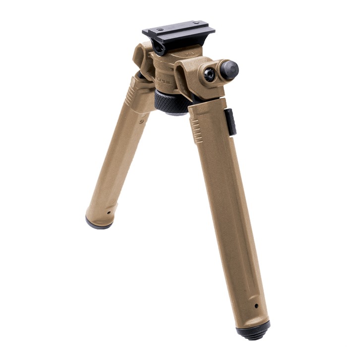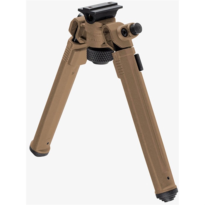 The Magpul Bipod for A.R.M.S.® 17S Style mounts offers serious strength and versatility at a price that provides unmatched value. Magpul’s lightweight Mil-Spec hard anodized 6061 T-6 aluminum and injection-molded polymer bipod brings innovation in ergonomics, functionality, strength and value together. Its low-profile design conceals its internal mechanisms and hardware, smoothly brushing off snags and bumps. Optimized for rapid one-handed adjustments, the bipod quickly and quietly transitions between user configurations. In the shooting position, it is easily loaded with stabilizing forward tension without fear of failure or warping. Its aluminum and stainless steel components, along with its injection-molded reinforced polymer, ensure years of dependable performance and reliability, all while shaving weight. It's extremely light weight, at just over 11 oz. Leg extensions slide and lock securely with the push of a button on any of the seven half-inch spaced locking detents. The legs extend 3.5 inches, from 6.8” to 10.3”. An industry-exclusive 50° of total tilt and 40° of total pan are controlled by a glove-friendly knurled tool-less bipod locking knob located between the extended legs. It also has the exclusive ability to lock pan at 0° while maintaining full tilt functionality. Folded, the streamlined housing and legs fit neatly under the barrel and are just under 2.3” deep and 3.3” wide. Anodized surfaces and tight, precision tolerances mitigate squeaks and rattles. A soft rubber bipod locking knob cap is attached to the locking knob gives users a steady, non-marring forward rest while the bipod is folded. Additionally, its staggered soft rubber feet hold fast on a variety of shooting surfaces and are easily removed with a roll pin punch. Should users choose to change feet, the Magpul Bipod’s legs accept most Atlas pattern bipod replaceable feet, except for the Atlas 5-H style. Made in the USA. FEATURES Designed for streamlined storage until deployment Folded, the sleek housing and legs fit neatly under the barrel and are just under 2.3” deep and 3.3” wide Leg extensions slide and lock securely with the push of a button and a tool-less knurled bipod locking knob allows easy adjustment between shots Legs extend from 6.8” to 10.3” with seven locking detents Spring-tensioned legs stow forward when not in use, and then quickly snap down and lock into place with one hand Legs accept most Atlas pattern bipod replaceable feet to best match the needs of your environment SPECS Attachment: A.R.M.S. 17S Style Materials: Steel, Mil-Spec hard anodized 6061 T-6 aluminum, polymer Height, max: 10.3"" Pan and Tilt: 50° tilt and 40° pan Weight: 11 oz.