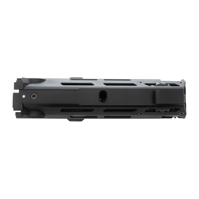 THE MOST RADICAL NEW-CONCEPT BIPOD EVER Balanced. Integrated. Accurate. The BLK LBL Bipod’s innovative barrel-through design allows the rifle to sit ‘in’ the bipod, rather than ‘on’ it, with the center of rotation of the bipod effectively centered on the bore, making it inherently more stable. The result is a balanced rifle without the top-heavy tendencies that can come from large optics. The ball and socket joint provide fluid movement for improved target acquisition and accuracy. With 40 degrees of pan and 15 degrees of cant in each direction, adjusting leg length to level your scope is a thing of the past. BLK LBL was borne out of the question: Why is something as practical as a bipod still an impractical attachment? When not deployed, the legs of the BLK LBL Bipod easily fold to the rear, flush with the hand guard. This means they won’t catch on clothing, gear or branches when you’re on the move, and won’t interfere when shooting off hand, from a barricade, or even when storing your rifle. A Passion for Precision With improved accuracy, lightweight construction, added stability and an expanded range of motion, the BLK LBL Bipod is the new pinnacle of bipod technology. Whether you’re in law enforcement, the armed forces, a sport shooter or hunting in the great outdoors, this bipod gives you exactly what you’re looking for; improved performance. Competitive & Sport Shooters: The BLK LBL Bipod provides improved accuracy and proven stability in all sport shooting competition situations, while the stowed bipod legs won’t interfere when on the move or shooting offhand. Outdoorsmen & Hunters: The integrated design of the folding BLK LBL Bipod means no more catching your bipod legs on heavy brush or branches, your clothes or even your rifle case when stowing. Plus the added stability and accuracy means more precise shots, which means more accurate, more ethical kills. Law Enforcement & Armed Forces: Safety, stability and control. It applies to law enforcement, as well as the BLK LBL Bipod. Of course, improved accuracy means fewer rounds expended, which results in a quicker, safer resolution of situations where protecting citizens and ensuring public safety is of primary importance. Whether it’s the stability only a bipod can provide from a set firing position, or easy handling in close quarters, the integrated design of the BLK LBL Bipod gives soldiers and their fireteam added confidence and effectiveness in nearly any situation. Durable aluminum handguard with the finest integrated bipod available. Made for the IWI X95 We make two lengths, SHORT for 16.5"" barrels, and LONG for 18.5"" barrels. Both the handguard and the legs are longer on the LONG version. SHORT - 209mm/8.2"" long, 478g / 16.8 ounces, Legs extend from 6"" to 9"" LONG - 248mm/9.7"" long, 526g/ 18.5 ounces, Legs extend from 8"" to 11.5"" 40 degrees of Cant rotation
