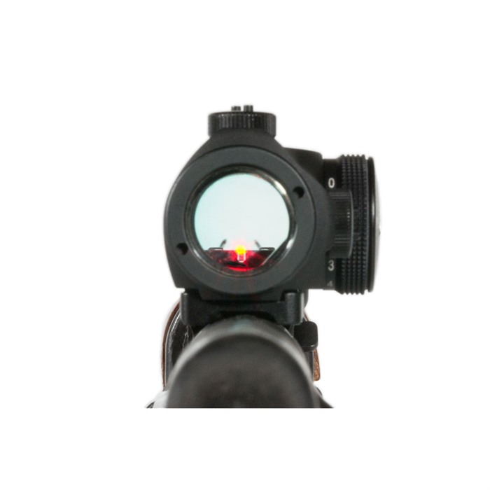 - Rail Picatinny à 5 emplacements, compatible avec les viseurs rouges à profil bas.