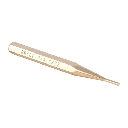 BRASS PUNCH SET The Grace USA Brass Punch Set is a premium collection of precision-machined tools designed for gunsmiths, machinists, and hobbyists who require non-marring implements for delicate tasks. Each punch is crafted from high-quality brass hex stock, ensuring durability while preventing damage to pins, firearm finishes, and other components during assembly, disassembly, and general maintenance. Description and Features: High-Quality Construction: Machined from premium brass hex stock, these punches offer a balance of strength and softness, making them ideal for tasks where non-marring and non-sparking tools are essential. Precision Machining: Each punch is machine-turned to exact specifications, providing consistent performance and reliability in critical applications. Variety of Sizes: The set includes eight flathead, long-shaft punches, accommodating a range of pin sizes and applications. Included Sizes: 1/8" 3/16" 1/4" 5/16" 3/8" 7/16" 1/2" 5/8" Specifications: Material: Premium brass Handle Design: Hexagonal for enhanced grip Length: Long-shaft design for extended reach Customer Insights: Our customers report that the Grace USA Brass Punch Set is indispensable for tasks requiring precision and care. The non-marring brass construction ensures that firearm finishes and delicate components remain unscathed during maintenance. Customers appreciate the variety of sizes included, which cater to a wide range of applications, enhancing the set's versatility and value. Incorporating the Grace USA Brass Punch Set into your toolkit ensures you have the right tools for delicate and precise tasks, maintaining the integrity and appearance of your projects.
