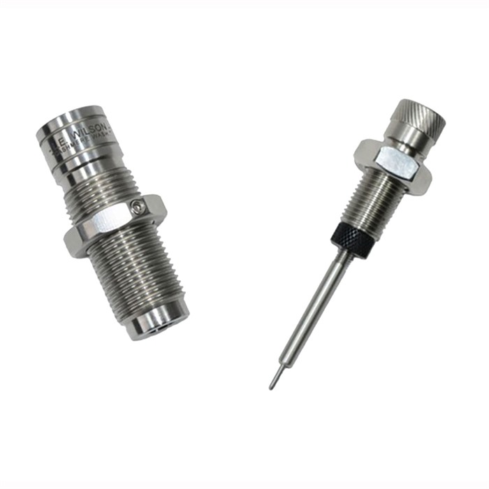 815145026552 Le die de dimensionnement complet de type Bushing de Wilson. Ce die te permettra de dimensionner le col de la douille selon la tension de col désirée tout en dimensionnant le reste du corps de la douille en même temps. Le die comprend une tige de décoinçage à profondeur réglable. Un outil de décoinçage supplémentaire est inclus. Ces dies ne contiennent pas d'expanseur. Fabriqué en acier traité thermiquement de haute qualité. Ces dies de dimensionnement complet Bushing imitent le dimensionnement du col des dies de dimensionnement de col de Wilson et sont conçus pour laisser 3/16" au bas du col de la douille non dimensionné, une pratique que de nombreux tireurs préfèrent et trouvent plus précise que de dimensionner tout le col. Fabriqué à partir de matériaux de haute qualité - Durci selon les spécifications de L.E. Wilson Plus dur qu'un boulon de grade 8 Bushing interchangeables Presses de rechargement standard de 7/8 pouces Tailles des dimensions de l'épaule et du corps Pièces en acier inoxydable pour une finition durable et de longue durée Durable et précis Écrou de verrouillage fabriqué par L.E. Wilson - épaisseur de .225" de l'intérieur au bord extérieur le plus éloigné .270" de hauteur et 1.250" de largeur totale OD. Bushing de col vendu séparément, nous suggérons d'utiliser les bushings de col L.E. Wilson mais les bushings Redding conviendront également.Supprimé du programme