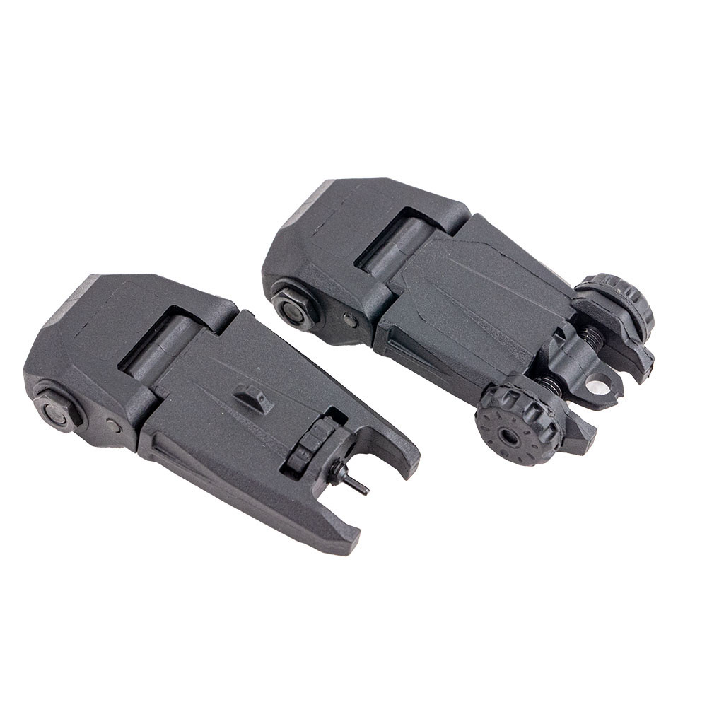 The set is lightweight and durable, and the flip-up design is enhanced with precision machined metal parts and heavy-duty springs. The set includes both front and rear sights.