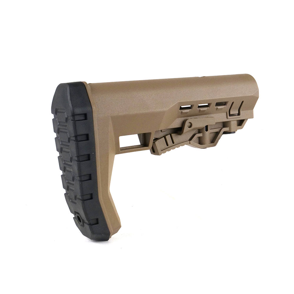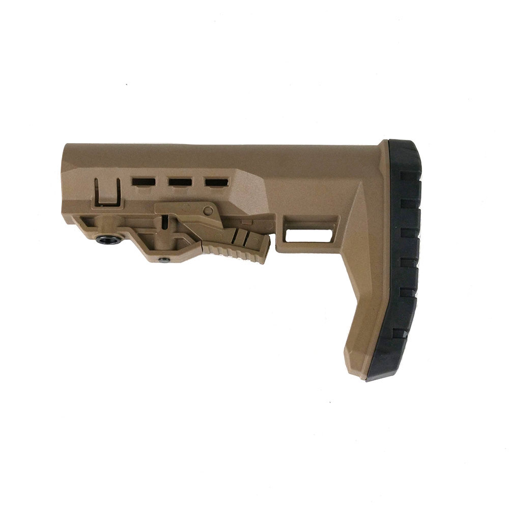 Optimized for use with plate carriers, the Breacher AR-15 Mil-Spec Stock prioritizes your shooting experience, even when wearing body armor. The angled rubber butt-pad and dual-side release latches are specifically designed to facilitate efficient shoulder transitions and provide a secure and stable shooting platform.