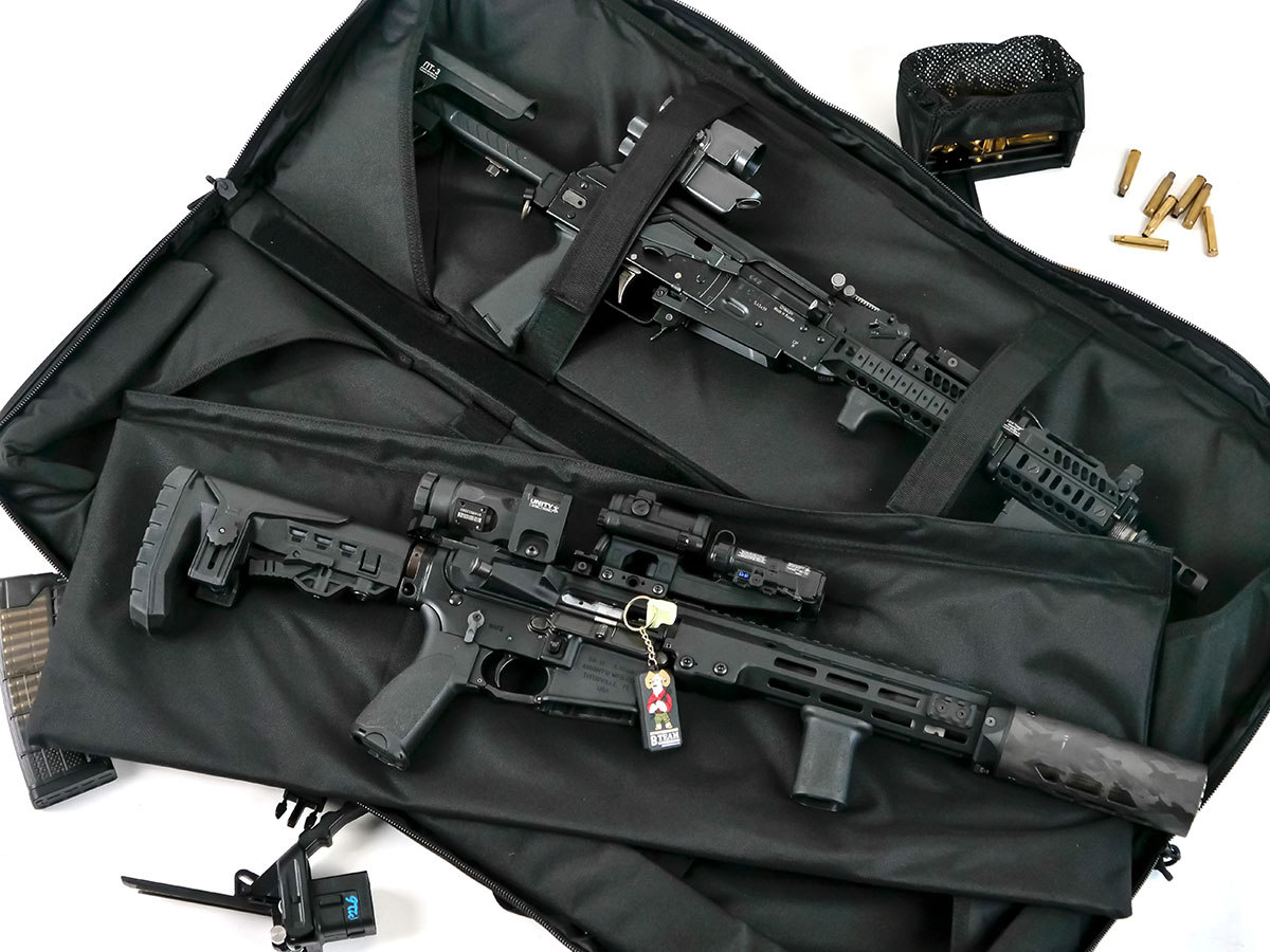 It comfortably accommodates two pistols, with easy access through D-ring pull tabs and large padded sleeves. Plus, there’s plenty of extra space for all your accessories, ensuring everything stays organized and ready for action.