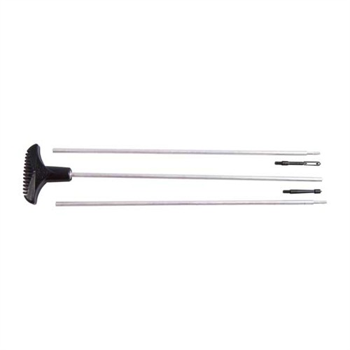 Aluminum and steel rods for Handguns, Rifles and Shotguns. Handgun rod is one-piece with swiveling handle. Standard 8-32 thread for brushes, etc., comes with .22, .38 and .45 jags. Rifle rods are three-piece with swiveling handle. Standard 8-32 thread for brushes, etc. A Knob (jag) tip and Slotted tip are included. .22 Caliber rod works for .22 to .270. .30 Caliber rod works for .30-.35. Both can use larger/smaller jags, and brushes for other calibers. Shotgun rod - Aluminum only. Three pieces, does not swivel. Includes two slotted tips for .410 through 12 gauge. 5⁄16"-27 thread.