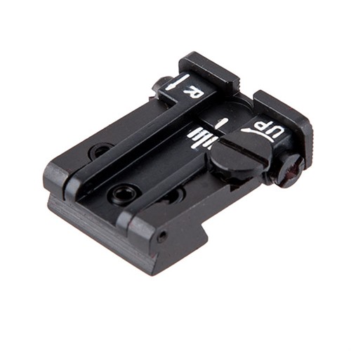 - Ajustement : Ajustez la dérive et l'élévation à l'aide des vis à clic durcies jusqu'à ce que la hausse soit alignée avec vos préférences de tir.