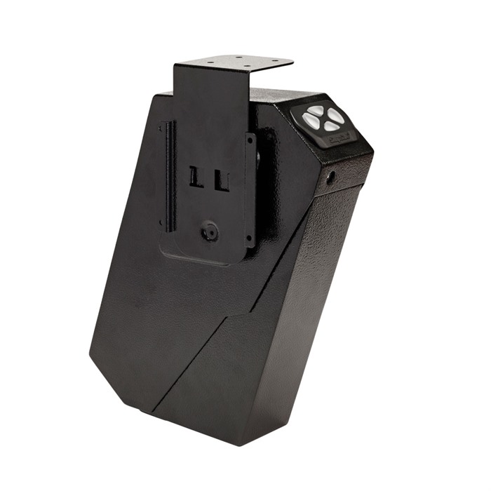851529004884 Gardez votre arme de poing à portée de main, en sécurité, et prête à être utilisée ! Reconnu par le Département de la Justice de Californie comme un dispositif de stockage d'armes à feu (FSD) approuvé. Ce coffre compact se fixe sous un comptoir ou un bureau, ou sur le côté d'une table de nuit pour un accès rapide à votre arme de poing. Il dispose d'un code de clavier programmable de 4 à 6 chiffres qui offre sécurité et accès rapide. Porte à ouverture rapide, résistante aux manipulations, et doublure en mousse protectrice pour protéger votre arme de poing des éraflures et des rayures. Fabriqué en acier de 16 gauge pour une sécurité exceptionnelle. Le support de montage permet plusieurs orientations et est facile à installer. Indicateurs de batterie faible audibles et visibles sélectionnables. Nécessite quatre piles AAA (non incluses). Verrou de secours à clé. Dimensions : 13.5"H x 7.5"W x 3.6"D Poids : 7.8 lbsSupprimé du programme par le fabricant