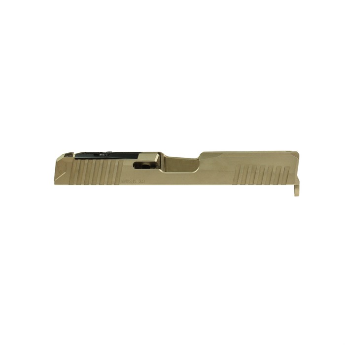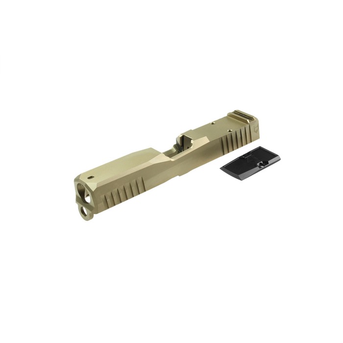 La glissière DUSK19 est fabriquée en acier inoxydable 17-4 et finition soit en nitride noir attrayant, soit dans une sélection d'options PVD magnifiques comme le flat dark earth, le bronze huilé ou le gris graphite. Les rainures avant et arrière sur la glissière facilitent le chambrage et le contrôle de pression. La glissière est prête pour les dispositifs de visée réflexe avec la plaque de couverture d'optique DUSK19 incluse, compatible avec les empreintes TRIJICON RMR/SRO® et HOLOSUN® 407/507/508 (modèles Non-K).
