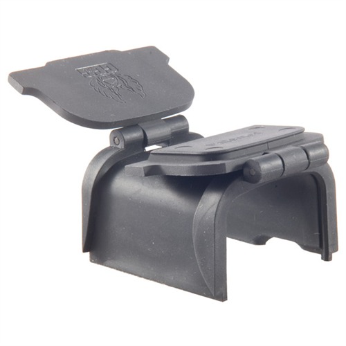 Les onglets sur les côtés droit et gauche des couvercles permettent une action d'ouverture rapide et ambidextre avec la pression du pouce ou du doigt. Le couvercle arrière se replie sur le capot de protection de l'EOTech pour assurer une vue dégagée à travers la lunette.
