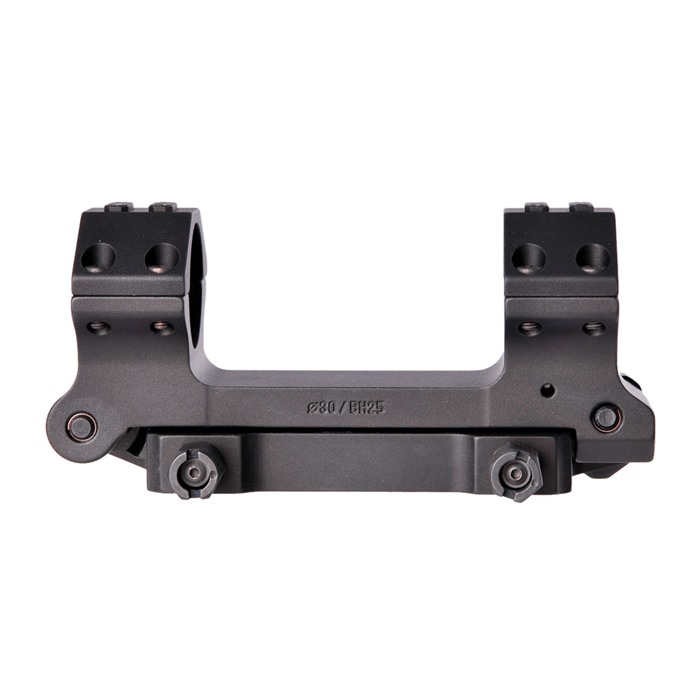 New GEN-2 with lightweight lever or nut system. Up to 7% lighter. Often the range of elevation adjustment of the scope in not the adequate to compensate for the bullet drop at long ranges. This scope mount was developed to offset the missing adjustment range of the scope. The inclination of the scope mount can be adjusted individually in steps of 10 from 0 – 70 MOA. The mount and the rifle scope can remain on the rifle. Self-locking thread inserts ensure permanent and stable seating of both bolted connections. Eratac guarantee 100% repeatability and shot strength. The upper and lower part of the mount are securely connected to each other by a screw running across the hand wheel diagonally. The hinge is designed as a solid tapered joint and ensures play-free seating of the components. NEW: The mount is now also supplied with a dial in mrad/MIL. The inclination can be changed in steps of 5 between 0 – 20 mrad/MIL. A Dozen Reasons for ERATAC Mounts: Machined from solid high-grade aluminum Hard anodized, matte black Made acc. to Mil-Spec. Type III Rust-proof components 100% repeatability Immediate return to zero! Tested up to cal. .50 BMG Available in many heights for different weapons and scopes With or without inclination for long-range shooting Rings with UNIVERSAL interface for attaching various tactical accessories Clamping system manufactured acc. to NATO-STANAG 4694, compatible with Mil-Std. 1913 Locking by either safety levers or hexagonal nuts without losable parts 100% made in Germany