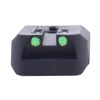 SPECS: Machined steel, matte black finish with fiber optic rods in red or green. Colt – Rear: 1" (2.5cm) long, .72" (1.8cm) wide, .46" (1.17cm) high, with .125" (3.2mm) wide notch. Fits Government model; milling required, instructions included. Kimber - Rear: Green insert. 1.080" (2.7cm) long, .704" (1.8cm) wide, with .125" wide notch. Fits factory dovetails of Kimber 1911 pistols; minor fitting may be required.Taurus – Rear: Green inserts. .76” (1.9cm) long, .625” (1.6cm) wide, with .135” (3.4mm) wide notch. Fits Taurus 1911 pistols; minor fitting may be required.