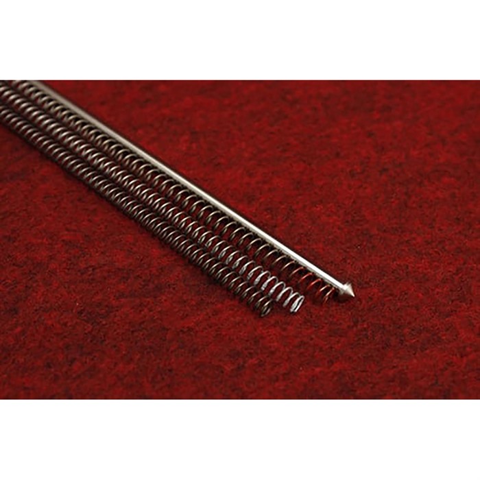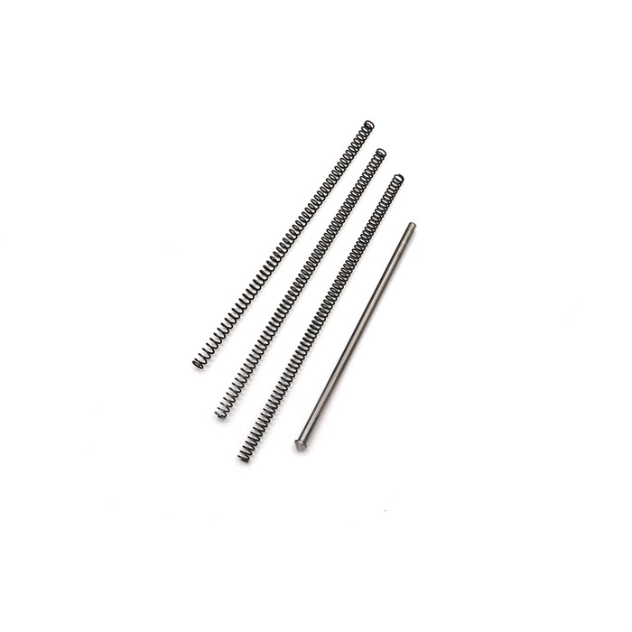 Upgrade the bolt handle assembly in the 10/22® Slick guide rod for easy racking Interchangeable tuning springs:(White=standard, Red=10% increase, Green=10% decrease) This great upgrade kit for your 10/22® will provide you with a comfortable bolt handle to grasp, a "super slick" guide rod, and the ability to tune the recoil of your rifle with our interchangeable springs. All bolt handle lengths are 1 3/4", which is 1/4" longer than the factory bolt handle assembly kit giving greater clearance for the shooter's knuckles while racking the bolt. The three tuning springs come in varying tensions for the ultimate in tuning capability. Though by and large the standard tension spring will serve the shooter throughout the different ammunition velocities. If, due to tolerance stacking or preferred ammunition the cycling of the action is out of sync then the shooter has the capability to change the spring without using the more primitive method of cutting coils to tune a spring. Handle Weights: black 762 (modified z shape flute)= .3 oz Precision ground guide rod is made from hardened tool steel and held to 2/10,000" tolerance throughout its entire length. The rod is nitride treated which gives its surface a 70C rockwell (harder than a file) surface hardness. Guaranteed the smoothest and slickest guide rod in the industry. Packaging Includes: bolt handle guide rod 3 tuning springs Installation instructions: After removing the stock from the barreled action, remove the trigger and bolt stop. This will allow the needed clearance for the bolt to be removed along with the bolt handle assembly. After choosing your proper spring tension slip the bolt handle assembly in from the ejection port, placing the cone end of the rod into the containment hole in the receiver. Then fully compress the bolt handle assembly while placing the bolt on it. After the mating of the bolt handle and bolt, let off the containment allowing the bolt to go forward. Install the bolt stop pin, trigger and stock. The video below offers some of the finer installation points.